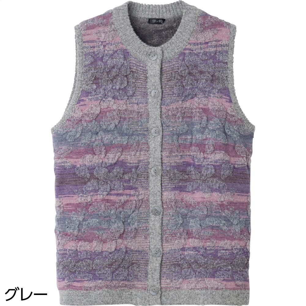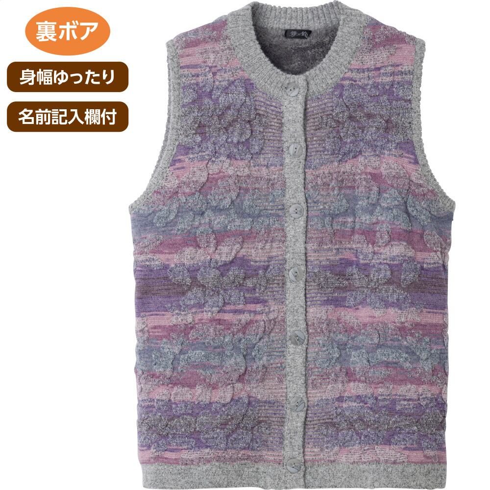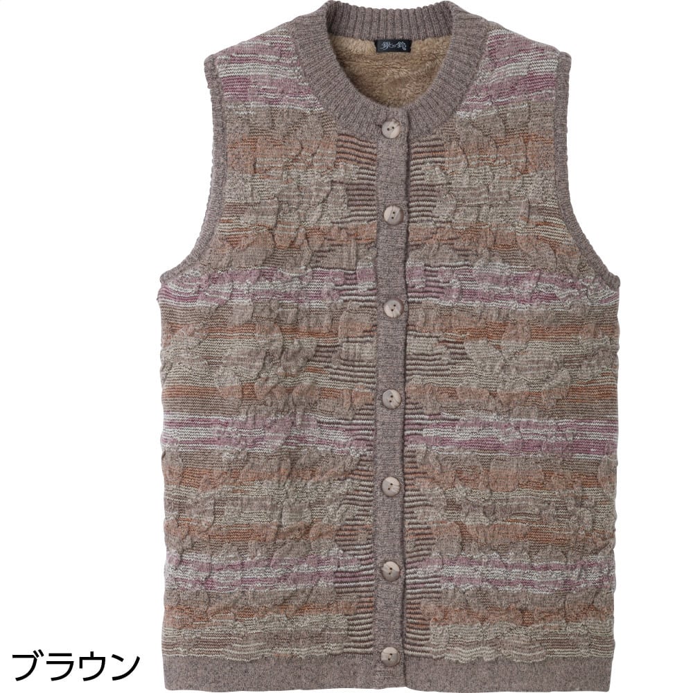 かすり調丸洗い裏ボアベスト①(婦人)