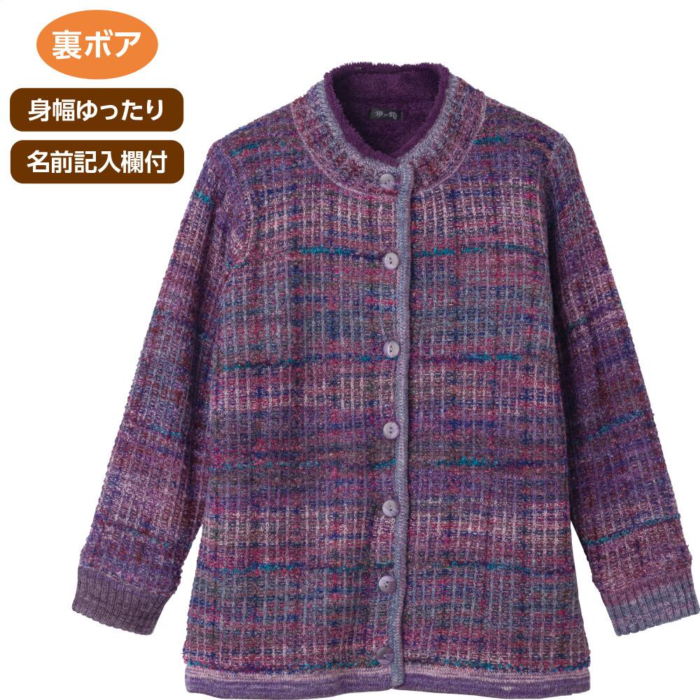 かすり調丸洗い裏ボアカーディガン②(婦人)