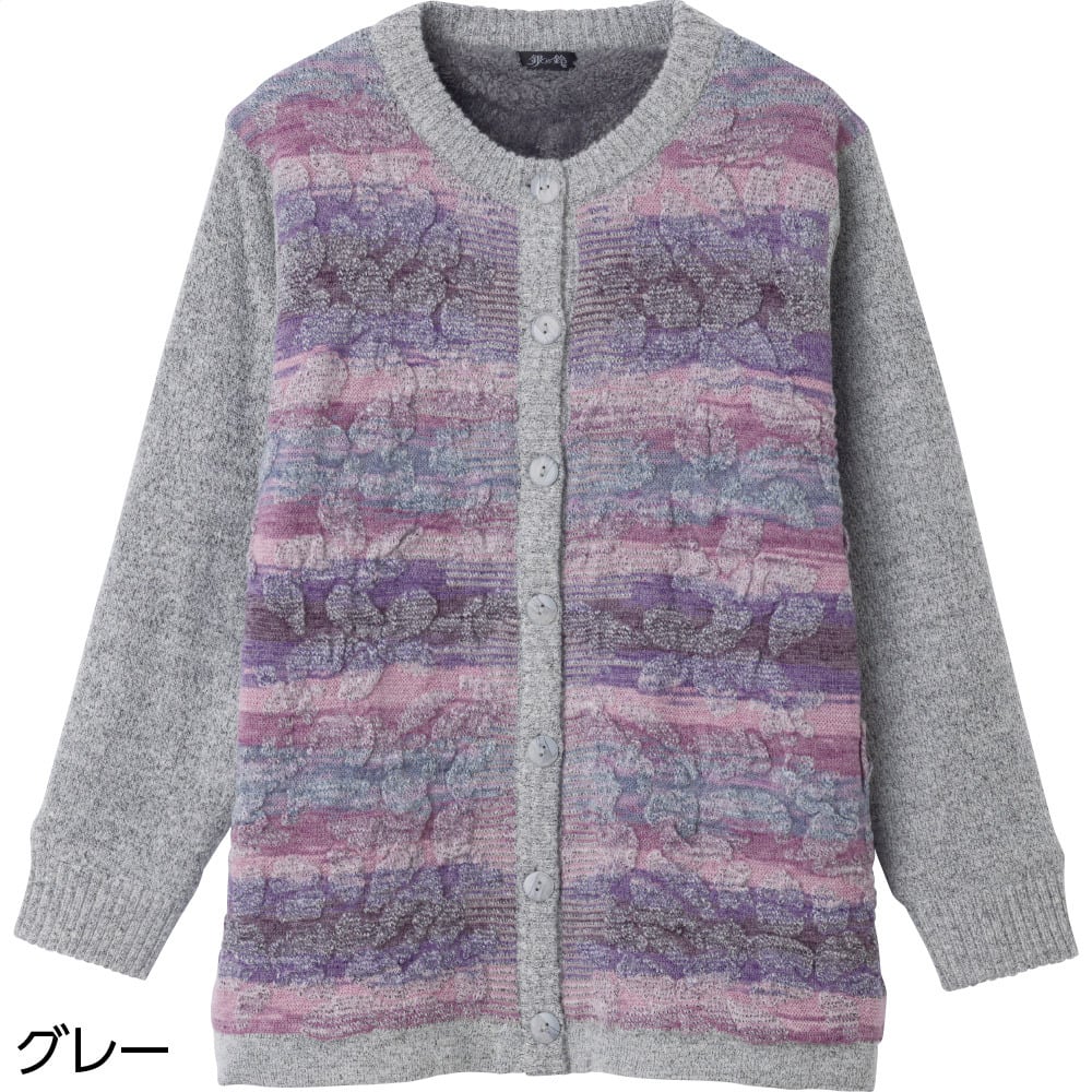 かすり調丸洗い裏ボアカーディガン①(婦人)