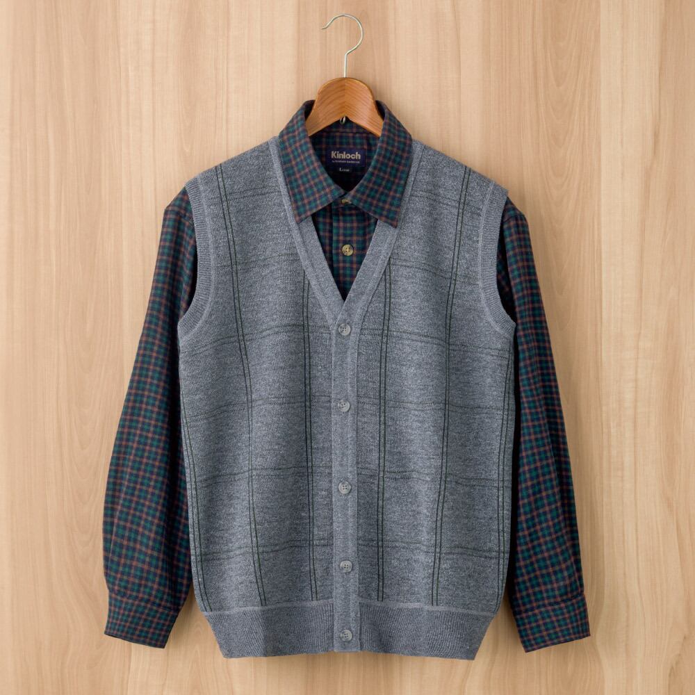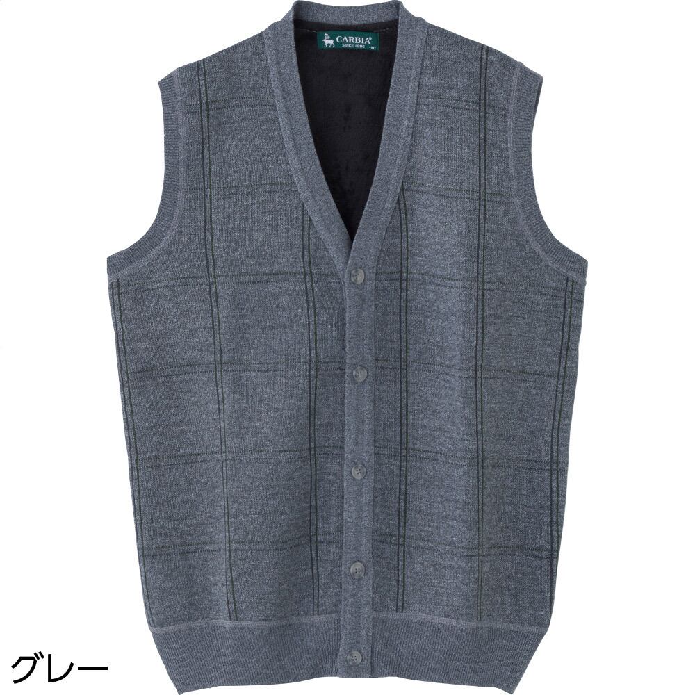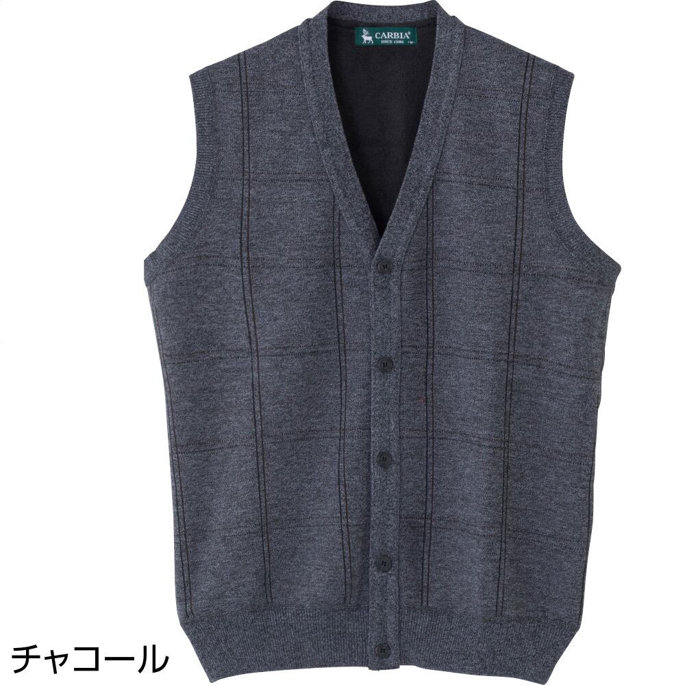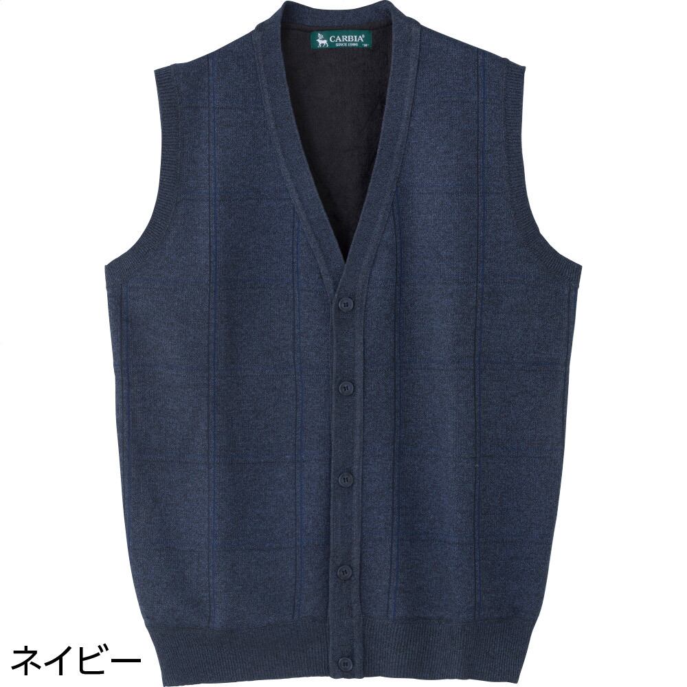 裏起毛ニット斜め釦ホ-ル前開きベスト(紳士)