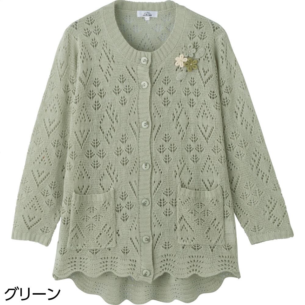 2026 新作春夏モデル ケアファツション 商品番号:145-822122 透かし柄が春夏らしく素敵。 乾燥機OKが嬉しい! 【大きめボタン&斜め釦ホ-ル】 奈々に開いたボタンホ-ルにより、 片手でもボタンの留め外しが負担なくできます。 【身幅ゆったり】 体を通しやすいゆったりとした身幅で、脱ぎ着がラクラク。 【名前記入欄付】 名前が書けるタグ付きなので、 施設での洗濯後も間違いを防止できます。 【後ろ身頃長め】 背中や腰の曲がってきた方にもぴったりフィット! 【前ポケット付】 【洗濯機OK】 素材:アクリル85%・ナイロン15% ※第一ボタンは斜め釦ホ-ル仕様ではありません。 サイズ: M~Lサイズ / LLサイズ / 3Lサイズ カラー:ベージュ・ローズ・グリーン・パープル 中国製 こちらの商品はメ-カ-取り寄せになります。 在庫管理システム上、人気商品などがやむを得なく品切れする場合がございます。 その場合には早急にメールにてお客様宛てにご連絡をさせて頂きます。 ご注文商品の出荷が遅れることもございます。 誠に申し訳ございませんがご了承下さいませ。